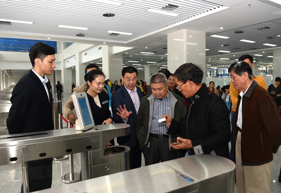 座談會(huì)開(kāi)始之前,姜宏濤、劉海榮、王修奮等陪同老干部參觀新落成的海口汽車(chē)總站,姜宏濤董事長(zhǎng)親自當(dāng)起了“向?qū)?rdquo;,向老干部介紹??谄?chē)總站現(xiàn)代化的自助售檢系統(tǒng)、智能化調(diào)度系統(tǒng)、信息發(fā)布系統(tǒng)、安防監(jiān)控系統(tǒng)以及先進(jìn)的人臉識(shí)別、車(chē)牌識(shí)別,車(chē)輛自動(dòng)檢測(cè)、自動(dòng)報(bào)班等功能。老干部們被眼前一座現(xiàn)代化、智能化、生態(tài)型道路客運(yùn)樞紐站所震撼,對(duì)公司近年來(lái)發(fā)展成果給予點(diǎn)贊。